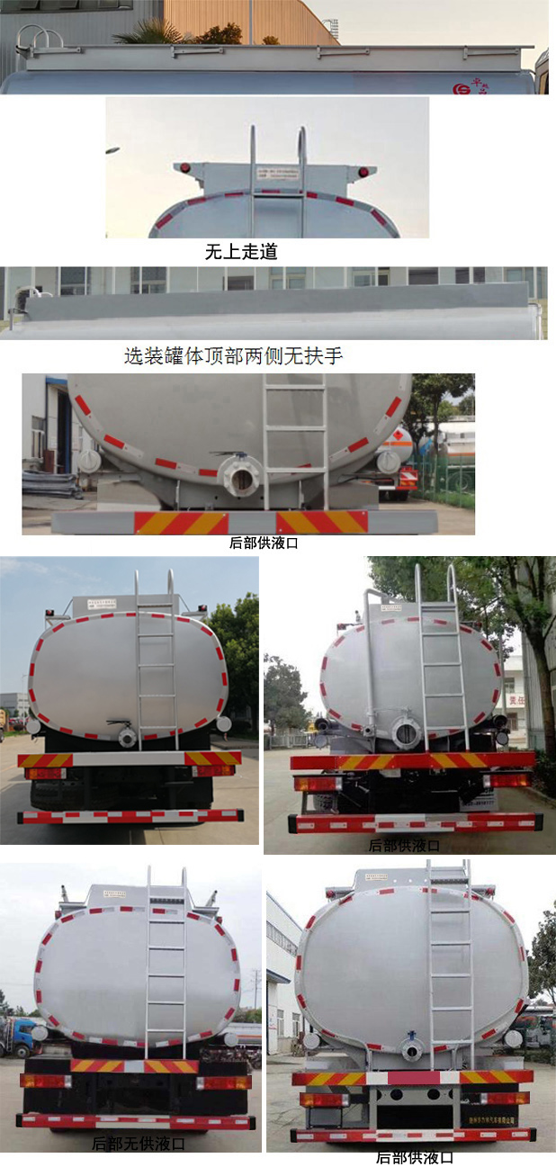 | 備注 | 隨底盤選裝同系列駕駛室,選裝進(jìn)氣口樣式。選裝罐體上部無上走道,有扶手或無扶手,后示廓燈架樣式;選裝罐體后部供液口閥門。 |