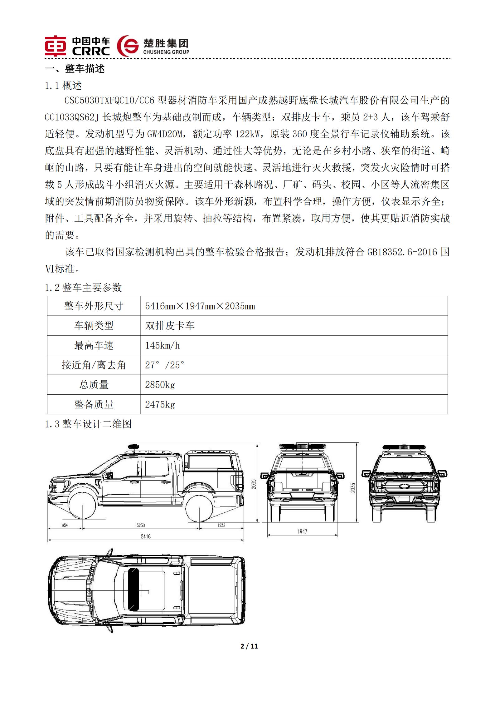 楚勝牌 CSC5030TXFQC10/CC6 型器材消防車(chē)
