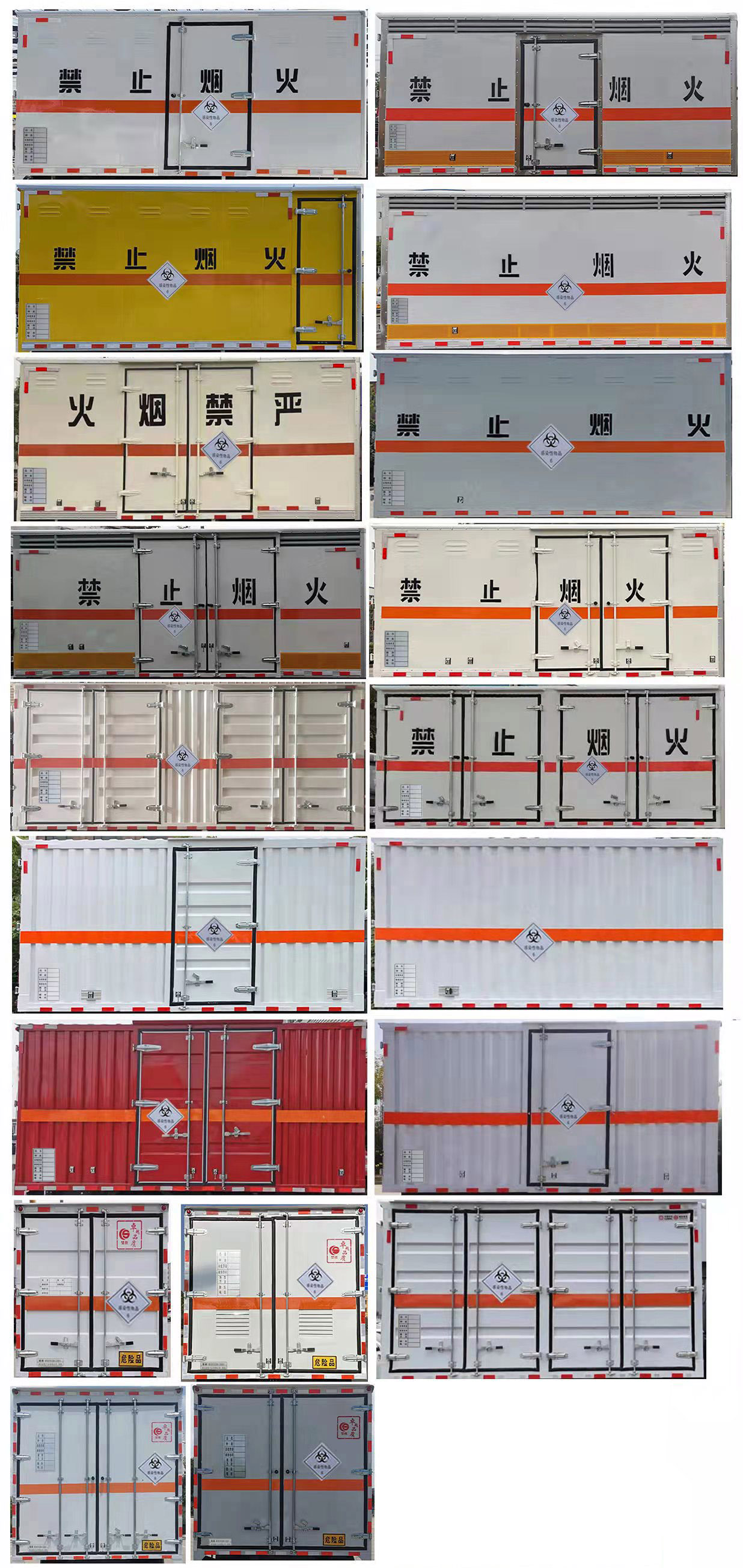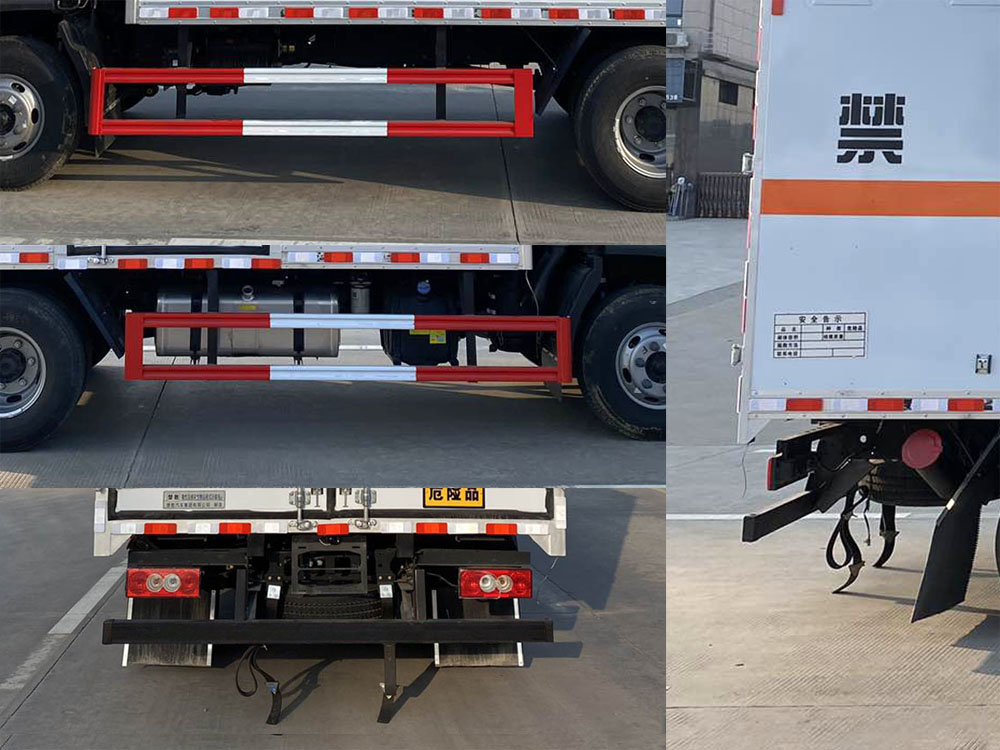 | 其它: | 1、該車適用于運輸危險品。廂體頂部封閉不可開啟。運輸具有獨立容器(瓶)包裝的物品,運送危險物品類項號:6.1,6.2。2、側(cè),后防護材料均為Q235,螺栓連接;后防護截面尺寸100×50mm,下邊緣離地高410mm。廂體側(cè)面選裝開門型式及位置,選裝不帶側(cè)開門,選裝瓦楞板結(jié)構(gòu);選裝百葉窗。3、隨底盤選裝排半駕駛室。僅選用排氣管前置、限速裝置(限速80km/h)、前輪盤式制動及子午線輪胎的底盤;轉(zhuǎn)向輪裝備輪胎爆胎應(yīng)急防護裝置。安裝帶衛(wèi)星定位功能的行駛記錄儀。ABS系統(tǒng)型號:ABS-VI.E;生產(chǎn)企業(yè):廣州瑞立科密汽車電子股份有限公司;ABS系統(tǒng)型號:ABS-E;生產(chǎn)企業(yè):威伯科汽車控制系統(tǒng)(中國)有限公司;ABS系統(tǒng)型號:ABS8.8 ECU 24V,生產(chǎn)企業(yè):東科克諾爾商用車制動系統(tǒng)(十堰)有限公司;發(fā)動機/油耗值(L/100km)對應(yīng)關(guān)系為:CY4SK261/16.09,D30TCIF1/16.19,F2.8NS6B156/15.39,F3.8NS6B156/14.90??蛇x裝ETC車載裝置。 | ||