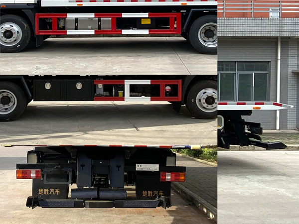 配置  該車主要用于道路清障,主要專用裝置為平板、托臂、絞盤、鋼絲繩、油缸。托舉質(zhì)量5000kg。側(cè)防護材料為Q235,螺栓連接,后防護由專用裝置代替,下緣離地高430mm。ABS型號/生產(chǎn)企業(yè):XH-KQ4S4M-E01/廣州市西合汽車電子裝備有限公司,CM4XL-4S/4M/廣州瑞立科密汽車電子股份有限公司,VIE ABS-Ⅱ/生產(chǎn)企業(yè)為浙江萬安科技股份有限公司。隨底盤選裝前面罩,選裝駕駛室,選裝后視鏡,選裝鋁合金輪輞。僅采用軸距4500mm。