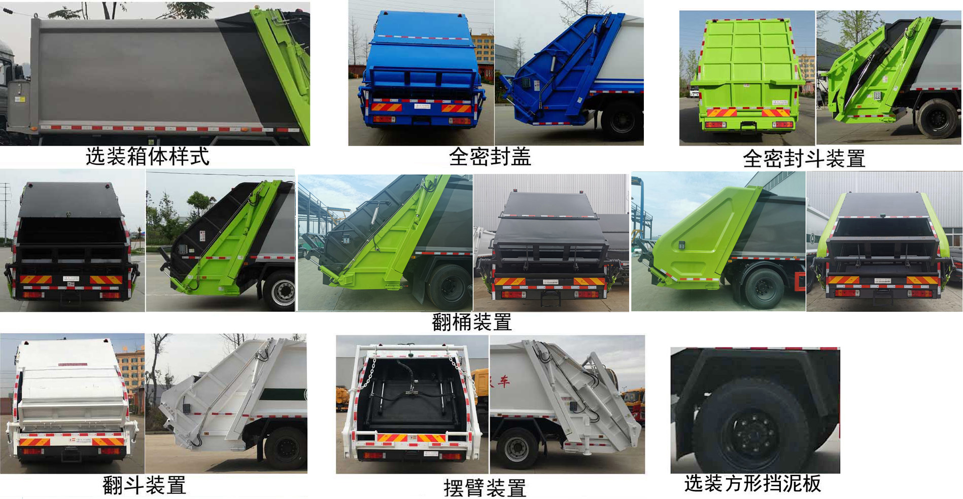 | 配置 | 1、該車主要專用裝置由箱體、填料器總成、壓縮系統(tǒng)等組成,用于垃圾的收集與清運(yùn)。該車可選裝方形或弧形箱體,選裝全密封蓋裝置。選裝后部工作裝置。選裝工作裝置時(shí)外形長(zhǎng)/軸距/后伸對(duì)應(yīng)關(guān)系為(mm):①無(wú)上料裝置:8620/4500/-;②全密封斗裝置和擺臂裝置:8820/4500/200;③翻桶裝置和翻斗裝置:9020/4500/400。僅采用4500mm軸距。2、側(cè)防護(hù)材料Q235,螺栓連接;后防護(hù)由專用裝置代替,下邊緣離地高:500mm。3、隨底盤選裝半高頂駕駛室,選裝改前圍的駕駛室,選裝不同結(jié)構(gòu)的翼子板。安裝帶有衛(wèi)星定位功能的行駛記錄儀。ABS生產(chǎn)廠家/型號(hào):浙江萬(wàn)安科技股份有限公司/VIE ABS-II。發(fā)動(dòng)機(jī)與油耗值對(duì)應(yīng)關(guān)系為(L/100Km):WP4.6NQ220E61/26.51,CA4DLD-19E6/26.5,CA6DLD-22E6/26.5。 | ||
