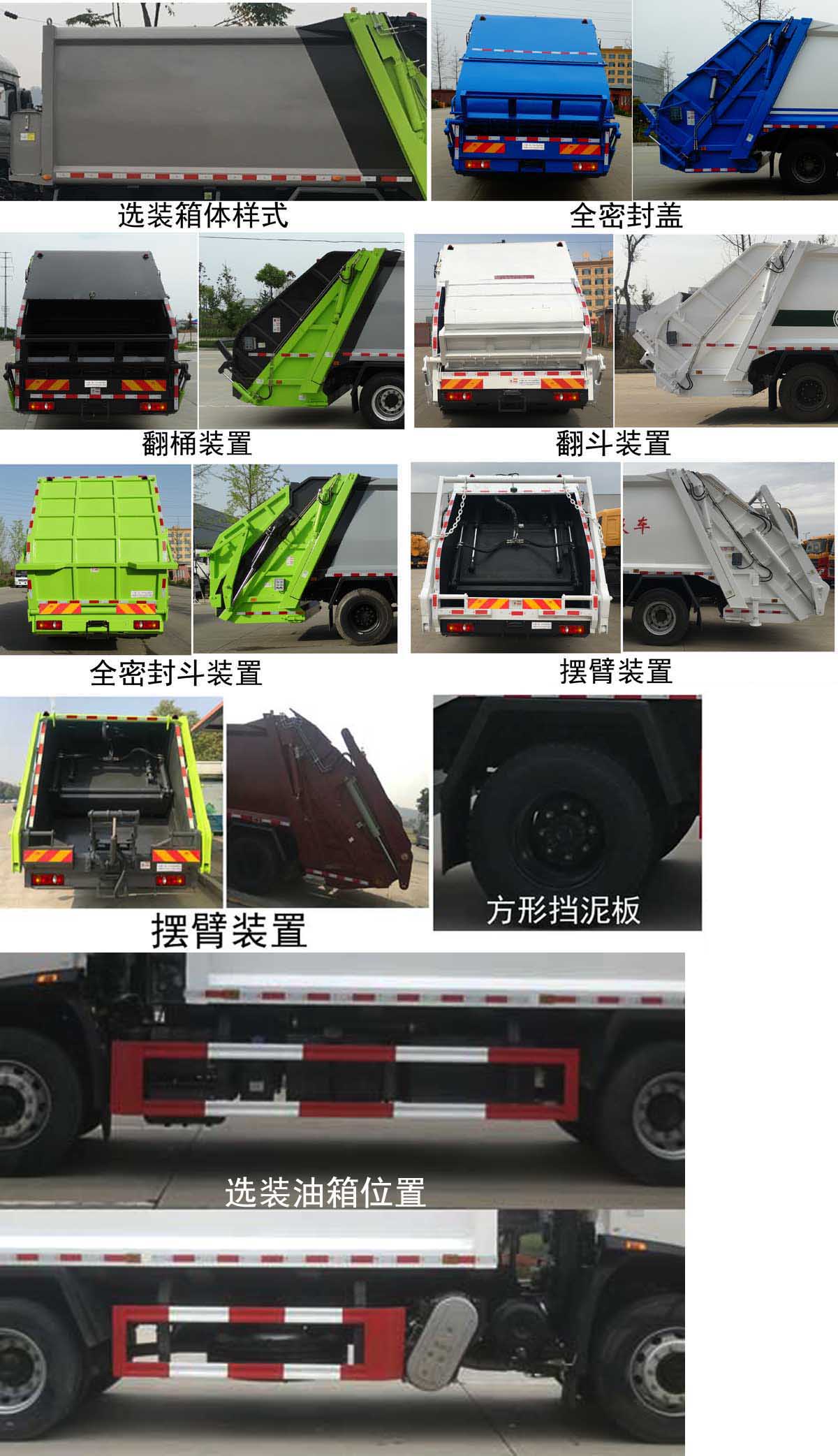 | 配置 | 1、該車主要專用裝置由箱體、壓縮系統(tǒng)組成,用于垃圾的收集與清運(yùn)。該車可選裝方形或弧形箱體,選裝全密封蓋裝置,選裝方形擋泥板,選裝后部工作裝置,選裝側(cè)防護(hù)樣式。選裝工作裝置時外形長/前懸/軸距/后伸對應(yīng)關(guān)系為(mm):①無上料裝置:8670/1400/4500/-;8700/1430/4500/-;8870/1400/4700/-;8900/1430/4700/-;②全密封斗裝置和擺臂裝置:8870/1400/4500/200;8900/1430/4500/200;9070/1400/4700/200;9100/1430/4700/200;③翻桶裝置和翻斗裝置:9070/1400/4500/400;9100/1430/4500/400;9270/1400/4700/400;9300/1430/4700/400。僅采用4500mm,4700mm軸距。2、側(cè)防護(hù)采用冷彎型鋼/Q235,螺栓連接;后防護(hù)由專用裝置替代,下邊緣離地高:500mm。3、隨底盤選裝高度不同的駕駛室;選裝前霧燈;選裝駕駛室頂部裝飾燈;選裝駕駛室前面罩;選裝前保險杠及前部燈具,駕駛室前臉擾流罩為選裝件;駕駛室臥鋪側(cè)窗選裝裝飾板;選裝油箱安裝位置,選裝踏步結(jié)構(gòu)。安裝帶有衛(wèi)星定位功能的行駛記錄儀。ABS型號/生產(chǎn)廠家:3631010-C2000/東科克諾爾商用車制動系統(tǒng)(十堰)有限公司,ABS 8/東科克諾爾商用車制動系統(tǒng)(十堰)有限公司, 4460046450/威伯科汽車**系統(tǒng)(**)有限公司。采用的發(fā)動機(jī)與油耗值對應(yīng)關(guān)系為(L/100Km):DDi50E190-60/23.9,D4.5NS6B190/24.4,D6.7NS6B230/23.7,B6.2NS6B210/23.8,B6.2NS6B230/23.8。 | ||
